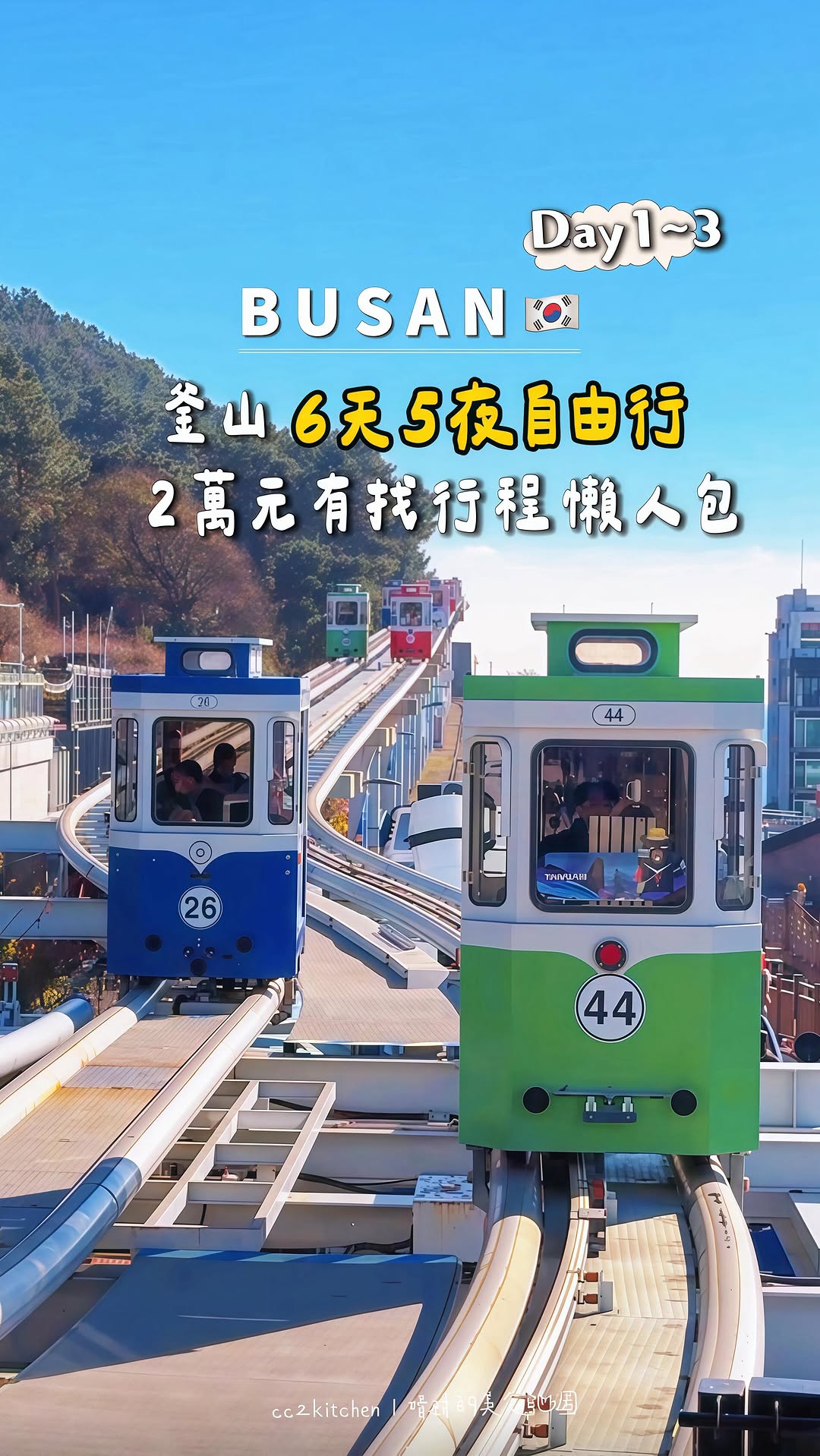 @cc2kitchen#釜山自由行 \ 釜山6天5夜行程懶人包 上集 / 第一次去釜山就愛上 這個城市太浪漫 💕 真的是會想再飛去的地方😍 想去釜山的人一定要收藏這篇!! 👉 新手也能照表走的 6 天 5 夜自由行攻略 追蹤我+底下留言「釜山」傳送給你 我の釜山之旅完整行程表! 這次自由行 機+酒 一個人2萬有找 吃好住好 買好玩滿 ✨ 釜山的交通也很方便 不用跟團也可以輕鬆玩釜山 P.S影片有分成上集和下集 上集主要是必去景點 下集是購物玩樂行程 部落格有完整圖文+地圖+交通教學 ➡️ https://cc2kitchen.com/busantrip/ 📌想拿完整行程表? 👉 追蹤我 + 底下留言「釜山」 我直接私訊傳給你 ❣️ 更多釜山懶人包👉🏻 #晴晴在釜山