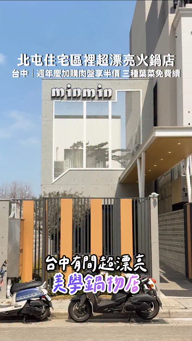 去年就觀望的漂亮火鍋店! 還以為到咖啡廳了呢😂 這棟還是自地自建!老闆說自己很希望吃火鍋, 想自己打造出心中期望的火鍋店🤩 發現來吃的幾乎都是常客耶😳 現在還有週年活動🎉 加購肉盤直接想半價優惠🔥 吃完身上居然沒有臭臭的耶0.0 位在北屯住宅區這, 距離洲際棒球場車程約5-6分鐘左右, 除了高品質肉品外,還有每日新鮮直送的活體海鮮🤤 你們來一定要加購蛤蜊,超級肥美又大顆耶🤩 真的一吃就愛上的那種,連和牛油花都漂亮到不行👍🏻 套餐附的菜盤沒有過多的火鍋料! 品項也很豐富耶,超大一盆的🤤 而且還有三種葉菜可無限續🤤 連套餐紅茶也可以續喝👌🏻 昆布鍋選用新鮮蔬菜與天然昆布熬煮多時, 完全純天然,不加味精、不靠粉包去熬湯! 不管是涮肉、煮菜都能吃到最純粹的味道👍🏻 提供的湯頭非常健康無負擔~ 個人最愛麻奶鍋,香麻醇厚、辣度溫潤順口, 還可以調整辣度👍🏻 喜歡吃火鍋的朋友趕快收藏起來🔥 - ▪️日本A5和牛 888元 ▪️伊比利梅花豬 438元 ▪️板腱牛 週年慶半價 80元 ▪️麻辣牛奶鍋 +89元 ▪️古早味瓜仔飯 +25元 ▪️讚岐烏龍麵 +15元 ▪️麻辣綜合 40元 ▪️特級蛤蜊 118元▪️鯛魚片 108元 - 🏷️minmin美學鍋物 @minmi_n7518 📍臺中市北屯區豐德二街102號 🕰️11:30~14:30•17:30~21:30(營業日期依估狗為主) ☎️0981-336109 🚷每週一、二公休 ➯ #巫巫吃火鍋 #巫巫吃台中 - #台中美食 #台中火鍋 #北屯美食